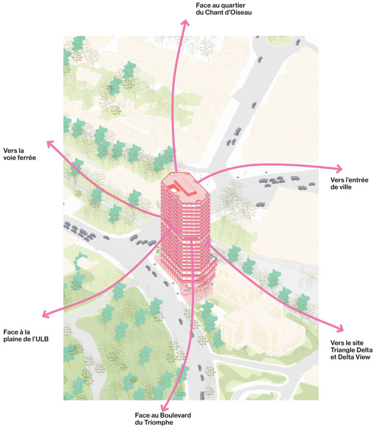 Celui-ci vise d’une part à renforcer la mixité fonctionnelle du site, et d’autre part à articuler l’esplanade Delta au travers d’un repère paysager, la Tour Triomphe. La Tour Triomphe est donc la matérialisation de la vision des autorités publiques régionales sur le site DELTA, elle respecte entièrement les prescriptions urbanistiques en vigueur.